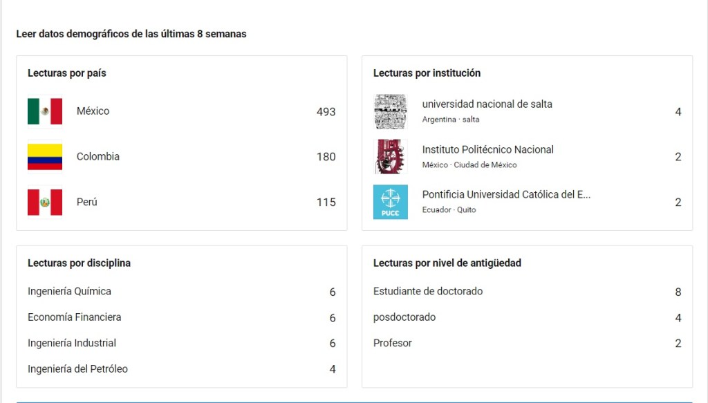 El alcance de lecturas de mis investigaciones más reciente en la red por parte de los lectores interesados.
